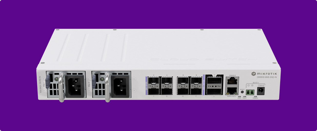 Realizzato per configurazioni interne, il CRS510 è progettato per installazioni con montaggio su rack, che si adattano facilmente alla sala server. Inoltre, ciò che spicca sono la sua ridondanza e le sue opzioni di alimentazione. Con due alimentatori sostituibili a caldo, garantisce un funzionamento continuo anche in caso di guasto di una fonte di alimentazione.