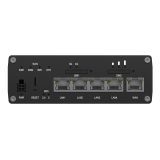 L'alimentazione avviene tramite un connettore industriale a 4 pin (9–50 V CC) con protezione contro le sovratensioni e l'inversione di polarità, oltre che tramite PoE passivo sulla porta LAN1. Il consumo energetico rimane contenuto, con meno di 5 W in standby e meno di 18 W a pieno carico. La gestione remota è abilitata tramite RMS (Teltonika Remote Management System), insieme al supporto per TR-069, SNMP, MQTT e JSON-RPC. L'interfaccia utente web (WebUI) offre una visibilità completa del sistema, inclusi log, diagnostica e aggiornamenti del firmware (FOTA). Il router è alloggiato in un involucro in alluminio anodizzato con protezione IP30 e funziona a temperature comprese tra -40 °C e +75 °C, rendendolo adatto ad ambienti difficili. Le molteplici opzioni di montaggio garantiscono una distribuzione flessibile in tutte le applicazioni industriali.