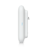 Nonostante la sua struttura robusta, il dispositivo rimane compatto e maneggevole, con un peso di circa 1,2 kg (1,33 kg con il supporto). L'alimentazione avviene tramite PoE+, semplificando l'implementazione ed eliminando la necessità di un'infrastruttura di alimentazione separata. Il dispositivo è inoltre dotato di un'interfaccia Ethernet RJ45 standard, che consente una facile integrazione negli ambienti di rete esistenti. La visibilità operativa è migliorata grazie a indicatori LED intuitivi, tra cui lo stato di alimentazione e la potenza del segnale mesh, che consentono una rapida diagnostica sul campo. La conformità agli standard e alle certificazioni globali garantisce ulteriormente affidabilità e compatibilità in tutte le regioni. Nel complesso, l'U7 Pro Outdoor combina una progettazione robusta con opzioni di implementazione flessibili, rendendolo una scelta affidabile per le reti wireless professionali all'aperto.